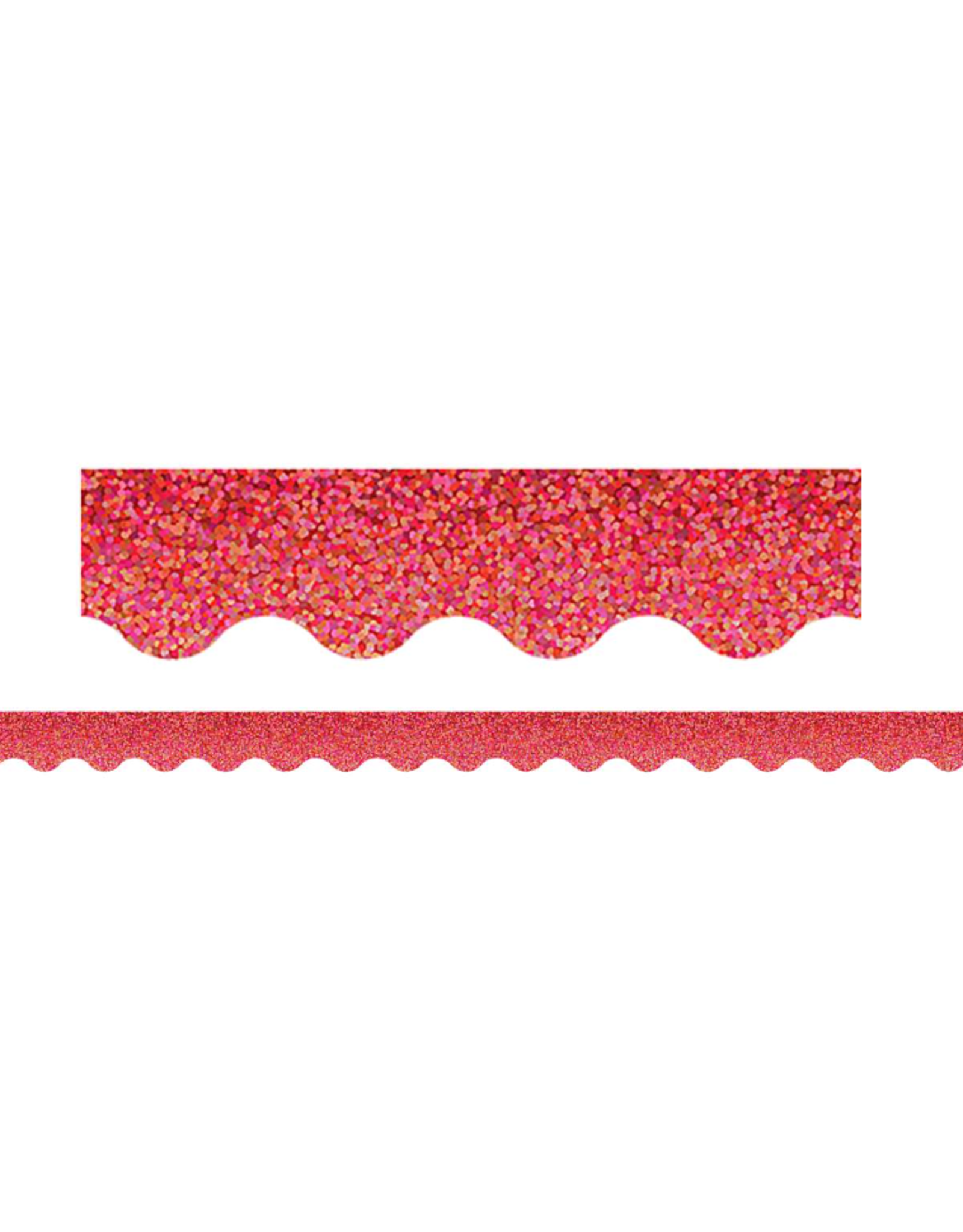Add a little fun to your classroom with this beautiful Red Sparkle Scalloped Border Trim. Use to frame student work, bulletin board displays, whiteboards, doors, or any place you want to add a little sparkle. 12 pieces per pack. 2 3/16” x 35”